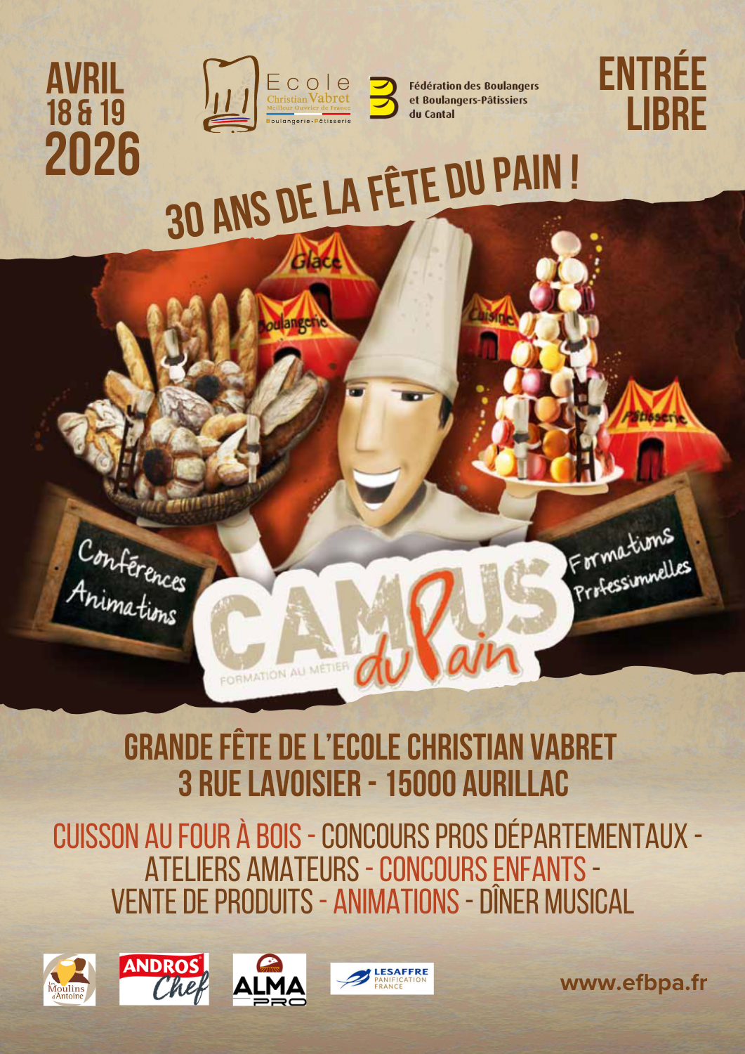 A l’occasion des 30 ans de la fête du pain, l’École Christian Vabret et la Fédération des boulangers du Cantal organisent un rendez-vous inédit : le Campus du Pain 2026.