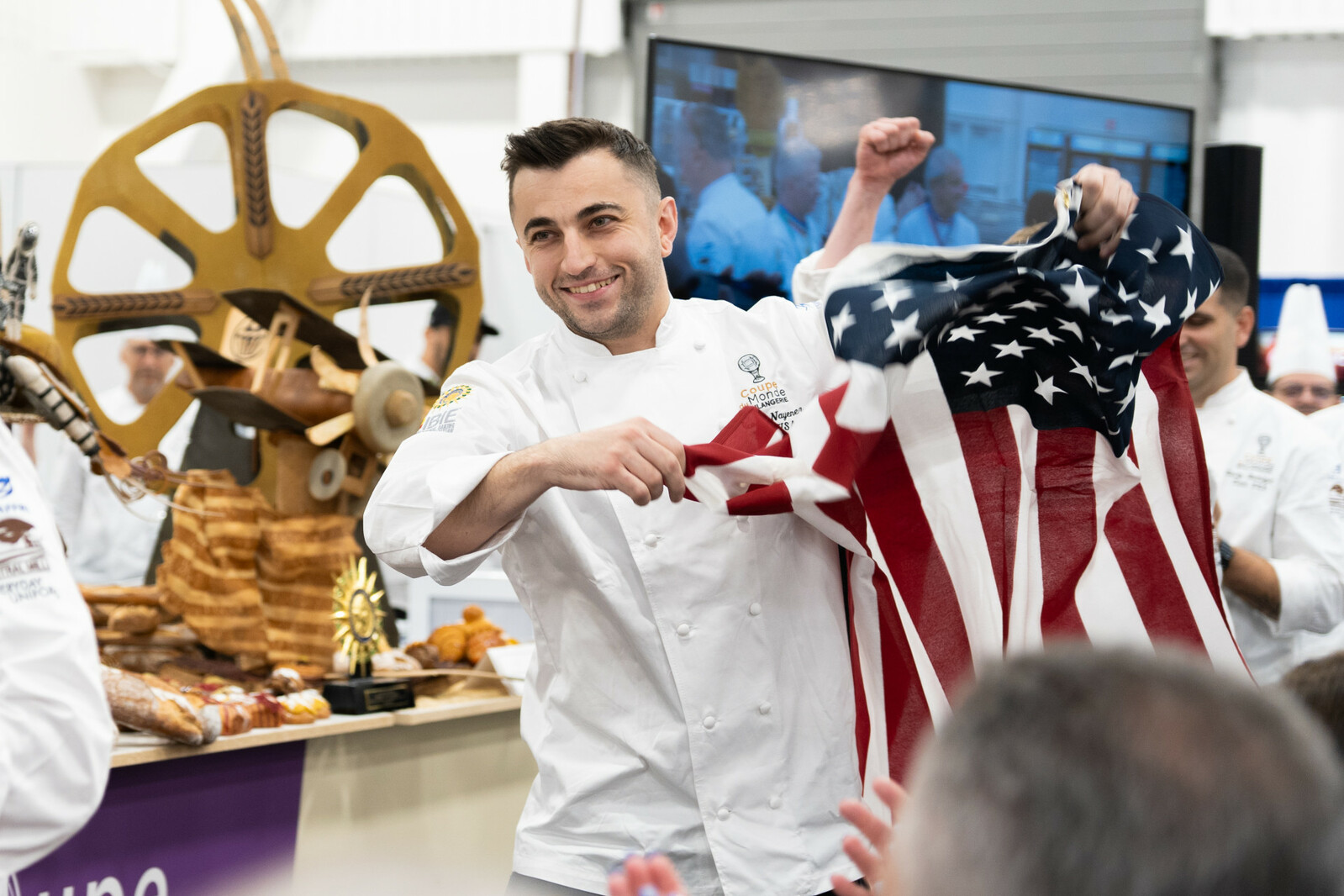 « Made in France, assembled in the U.S ». Oui, je suis né en France, mais là où je me plais c’est aux USA, et c’était un grand honneur de porter leurs couleurs à la Coupe du Monde de la Boulangerie 2026.